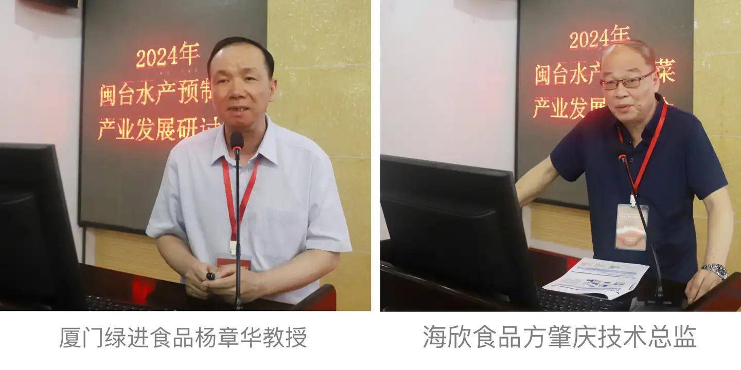 在产品开发方面:台湾海洋大学吴彰哲教授介绍了马祖淡菜精的创新开发及其在伤口愈合领域的应用。中国水产科学研究院南海水产研究所陈胜军研究员则阐述了其团队在提升水产品质量安全、开发新型加工技术以及丰富产品多样性方面取得的最新研究成果。厦门绿进食品的杨章华教授详述了预制菜产品开发的创新逻辑。海欣食品方肇庆技术总监分享了鱼糜制品的创新策略。这些报告展示了如何应对挑战,推动水产预制菜产品升级和多元化创新。
