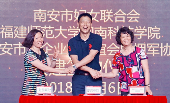 2018年6月6日,南安市妇联、乐玩web版登录入口、南安市女企业家联合会暨拥军协会签订“女企闽科 创咖助力 巾帼行动”三方共建协议。