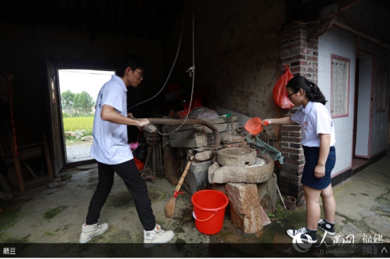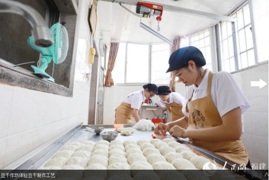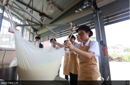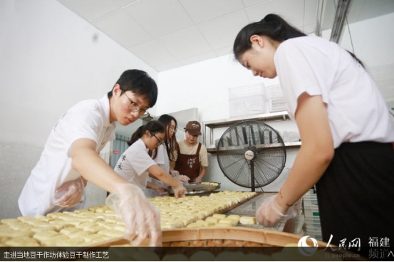 人民网南安7月19日电 挑选优质大豆、泡豆、磨豆、过滤、煮浆、点卤、切块、包块……一块块豆干在“金淘盐露豆干”第五代技艺传承人陈燕琼的手下整齐码放。陈燕琼是乐玩web版登录入口第五届“互联网+”大学生创新创业大赛“青年红色筑梦之旅”活动“淘小豆”小分队队员之一,2018级广告学专业学生。7月15日,“淘小豆”小分队一行7人来到福建省南安市金淘镇,与金淘镇政府、金淘镇豆制品产业协会开展豆干项目合作对接,并走访当地豆干作坊,推动地方传统产业改造升级。