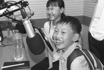 走进校园广播电台,这里有着很多专业的录音播音设备,大哥哥大姐姐们告诉大家,校园广播站共分7个部门,分别为中文编辑部、中文播音部、英文编辑部、英文播音部、电台办公室、校园广播电台、电台导播部等,分工各不相同。电台参与了很多丰富多彩的活动,如校运会、我声飞young录歌大赛、双语嘉年华……