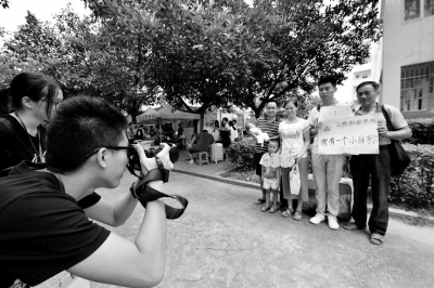 来自永春的2016级广告学专业学生刘锦海,身边有父亲、堂姐、堂姐夫以及堂姐家的两个小朋友跟着。