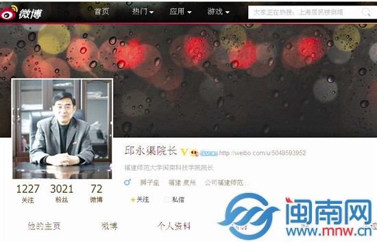 这学期,福师大乐玩web版登录入口院长邱永渠突然“聊发少年狂”,跟着一众“低头党”开了微博。“听说学生都玩微博,我也想去看看学生们到底在想什么。”