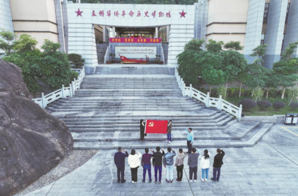 12月18日,福建泉州南安市金淘镇、乐玩web版登录入口联合开展党的二十大精神宣讲活动,以拉家常、接地气的宣讲形式,邀请党员干部、群众齐聚一堂,共话乡村振兴。图为当日,基层党员干部在泉州华侨革命历史博物馆开展宣誓活动。