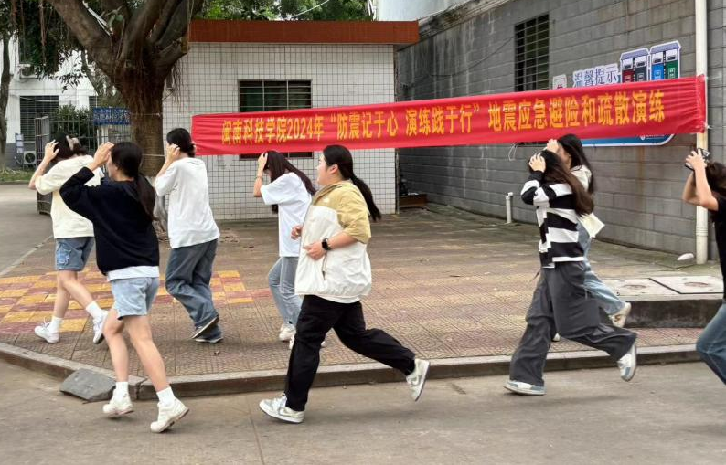 随着地震预警警报声响起,参加演练学生双手抱头,迅速躲进课桌下或蹲在墙角处,用书或书包保护好头部进行紧急避险。震后,由辅导员们指导学生弯腰扶墙,按照预先规定的应急疏散路线安全、快速、有序撤离,达到了演练的预期效果。