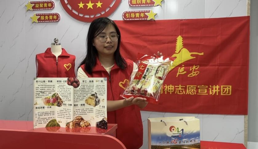 “这是延安当地特有的米酥,吃起来口感特别好,大家快来品尝……”宣讲过程中,宣讲团还将延安精神宣讲与延安特色农产品直播推介相结合,为延安地区的乡村振兴作出贡献。