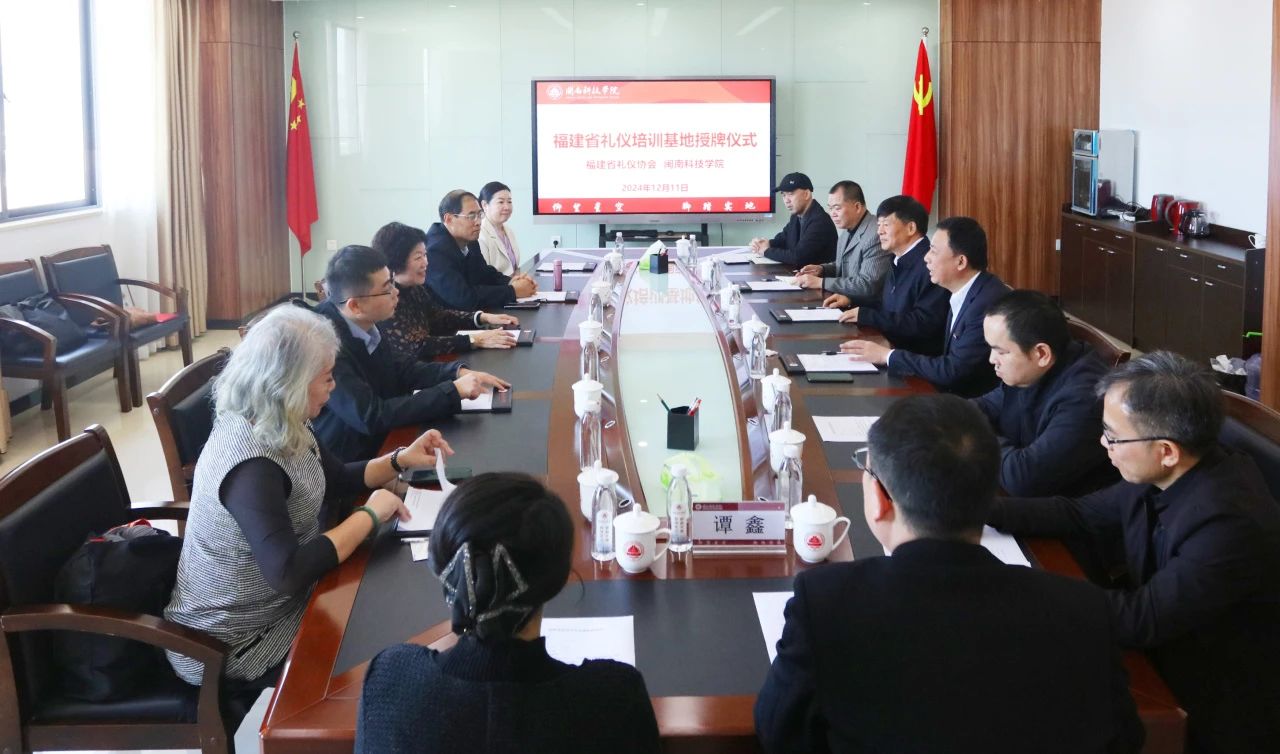 根据我校与福建省礼仪协会签署的共建协议,12月11日上午,福建省礼仪协会会长郑耀星一行莅临我校举行“福建省礼仪培训基地”授牌仪式。校长袁自煌,校党委书记李旭会见郑耀星会长一行,校党委副书记林树生代表学校接牌,党政办公室、宣传部、学生工作处、商学院负责人出席有关活动。