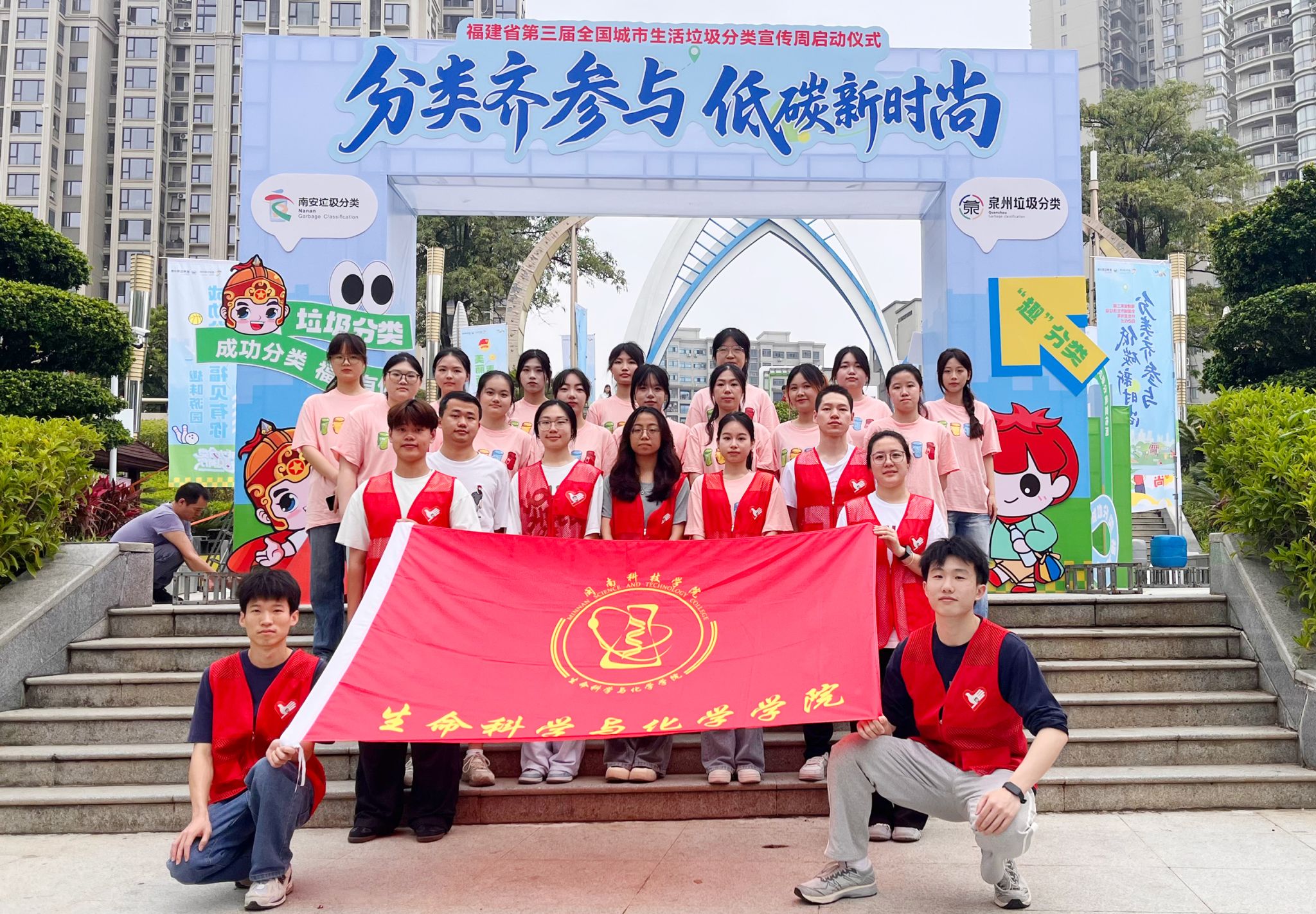 5月19日上午,福建省第三届全国城市生活垃圾分类宣传周启动仪式在南安市武荣公园盛大启幕。我校生命科学与化学学院23名学生精心编排的环保节目《垃圾分类快闪秀》,作为启动仪式的开场表演项目,同学们青春活力与创意巧思的表演,为宣传活动奏响精彩序章,博得现场观众阵阵掌声。