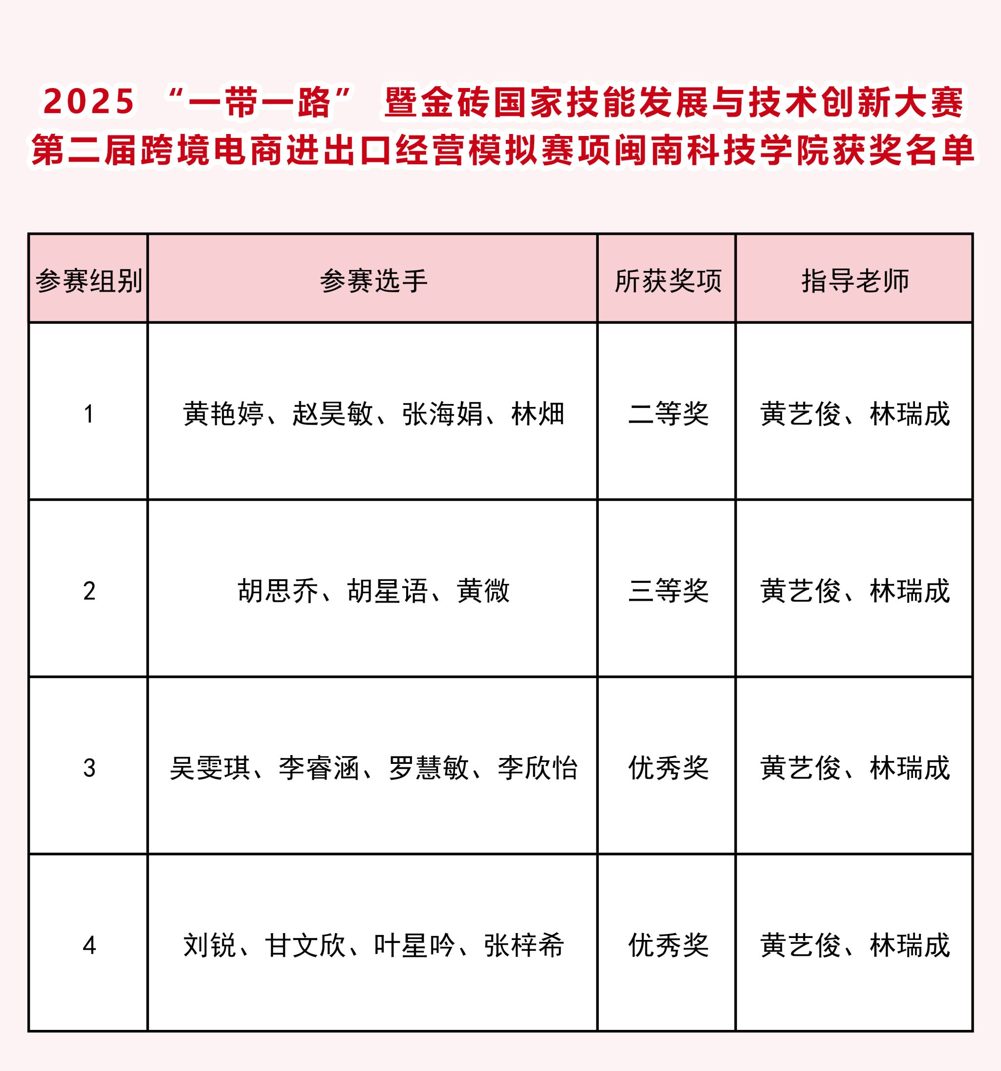近日,2025“一带一路”暨金砖国家技能发展与技术创新大赛之第二届跨境电商进出口经营模拟赛项成功举办,我校人文学院参赛学子获二等奖1项、三等奖1项、优秀奖2项。