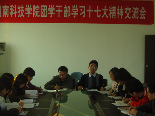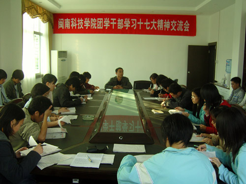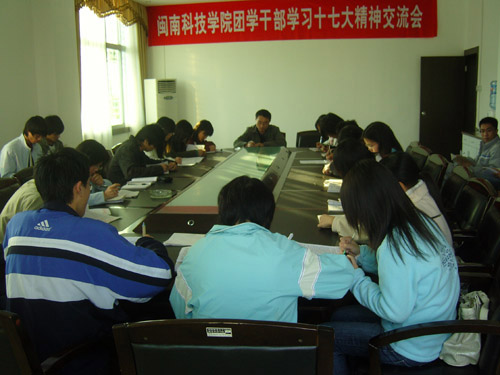 为认真学习贯彻十七大精神,在全院范围内营造良好的学习氛围,充分发挥团学干部的模范带头作用,1月4日下午,我院团委在学院第一会议室举行福建师范大学乐玩web版登录入口团学干部学习十七大精神交流会。院党委副书记陈振祯副教授出席会议并做了重要讲话。学院团委、学生会14个部门40多名学生干部参加会议。会议由团委负责人刘武强老师主持。
