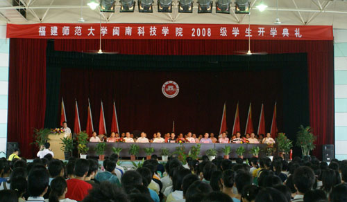 9月16号上午,我院在学生活动中心隆重召开2008级迎新大会。福建师范大学党委副书记、福建师范大学乐玩web版登录入口党委书记郭绍生、福建师范大学副校长汪文顶,南安市委副书记曾焕楷、学院董事长戴宏达先生及其他董事会成员出席了本次大会。参加迎新大会的还有师大、南安市政府、康美镇以及学院的有关领导和教师代表、老生代表、全体新生。迎新大会由常务副书记林国庆主持。