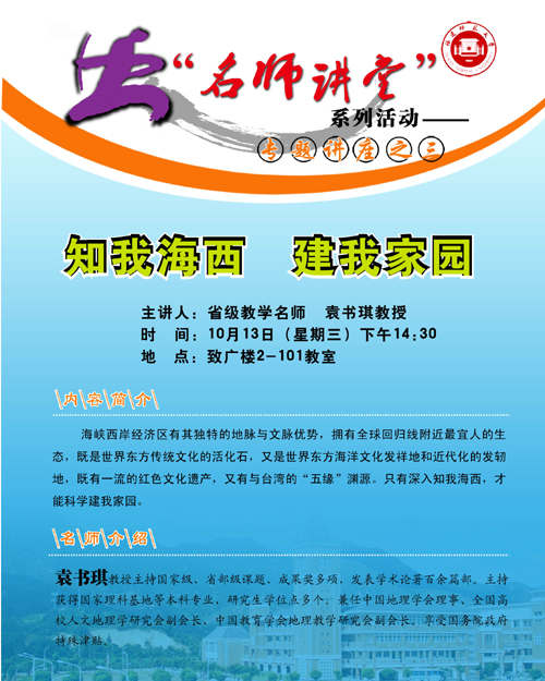 福建师范大学举办“名师讲堂”系列活动——专题讲座(公开课)