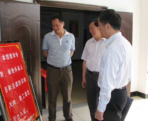 郭丹院长带队对游泳馆进行了视察,充分肯定了游泳馆的新面貌。视察更衣室时,郭院长及其他领导对更衣室内的装潢设计提出建议,大到结构设计、排水渠道,小到告示牌的粘帖等。为作更好建议,副院长肖华山教授亲自下水体验。上岸后,他现场讲述了自己的感受并提出意见和要求,在泳池外围铺上地毯防滑,保证学生的安全使用。随即,郭院长对即将迎来游泳课的同学们发表了讲话。郭院长说道:“游泳是一项很好的、终身的运动项目,大学生应该德智体美劳全面发展。”他强调,同学们在学习游泳的同时要时刻注意安全。