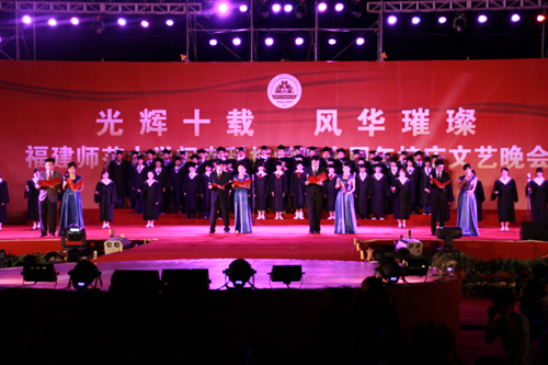 晚会由泉州儿童职业技术学院带来的开场鼓乐《鼓舞明天》扣人心弦的节奏声开场。现场的荧光棒都在半空中挥舞着,划出一道道绚丽的霓虹,艳丽的色彩交织出一片绚烂的海洋。伴随着全场人员的倒数,乐玩web版登录入口十周年校庆文艺晚会正式拉开帷幕。