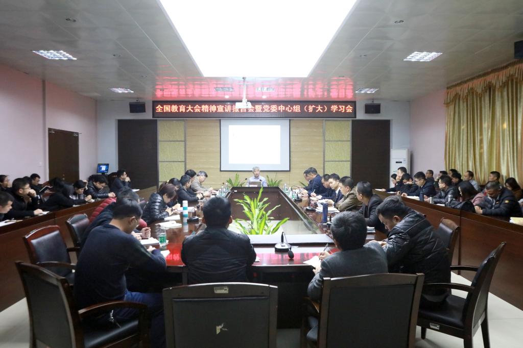 12月17日上午,我院召开党委中心组学习(扩大)会议,邀请省委教育工委、省教育厅“百人宣讲团”成员,福建师范大学党委常委、副校长,学院党委书记赖海榕研究员作《深入学习贯彻习近平总书记在全国教育大会上的讲话精神》专题辅导报告。学院党委中心组全体成员、中层干部及辅导员共计70余人参加报告会。报告会由学院党委副书记、副院长(主持工作)张杰教授主持。