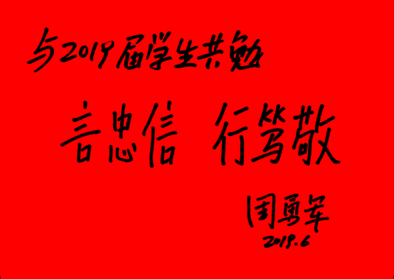 学院党委副书记、副院长(主持工作)张杰为2019届毕业生寄语题词