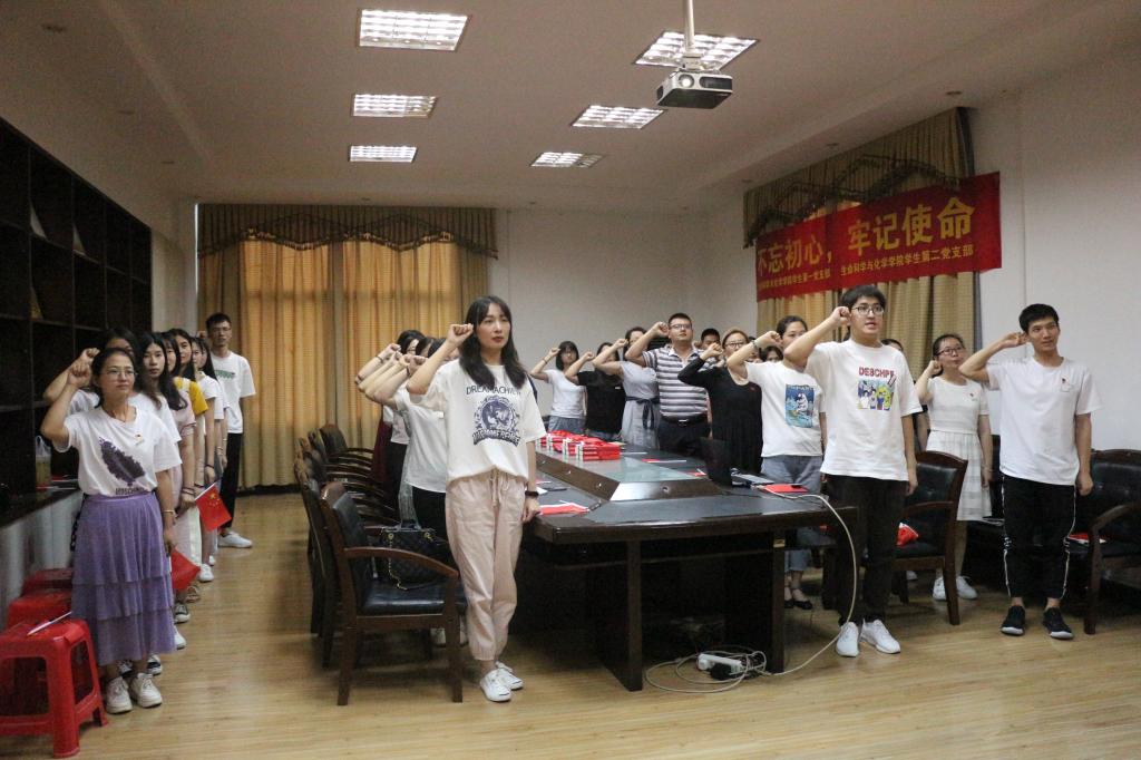 为贯彻习近平总书记在“不忘初心,牢记使命”主题教育工作会议的讲话精神,6月1日,生命科学与化学学院党总支在毕业班党员即将离校之际,开展“不忘初心,牢记使命”主题教育,通过观看一段《奋斗》微视频、重温一次入党誓词、过好一次“政治生日”、齐唱一曲《国际歌》、上好一堂主题党课等“五个一”活动进一步增强毕业班党员身份意识、责任意识和宗旨意识,激励学生党员在以后各自的工作岗位上发挥作用。