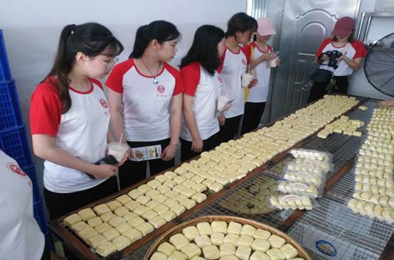 阿兵哥豆干坊是金淘镇重要的经济产业之一。实践队一行来到豆干坊,参观、学习豆干的制作流程,与豆干坊的“阿兵哥”进行深入交流,并动手学习制作豆干。
