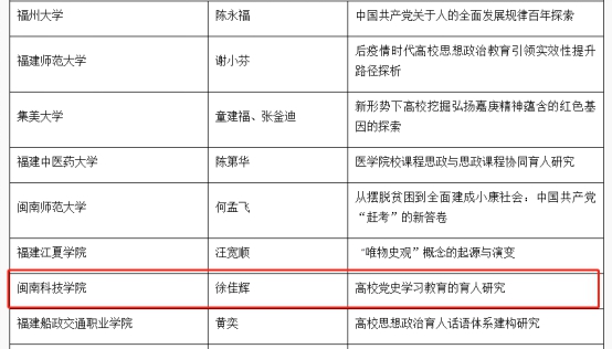 近日,由福建省高等学校思想政治教育研究会主办的“迎百年华诞、谱时代新篇”优秀论文征集评选结果公布。我校商学院辅导员徐佳辉撰写的论文《高校党史学习教育的育人研究》荣获二等奖。