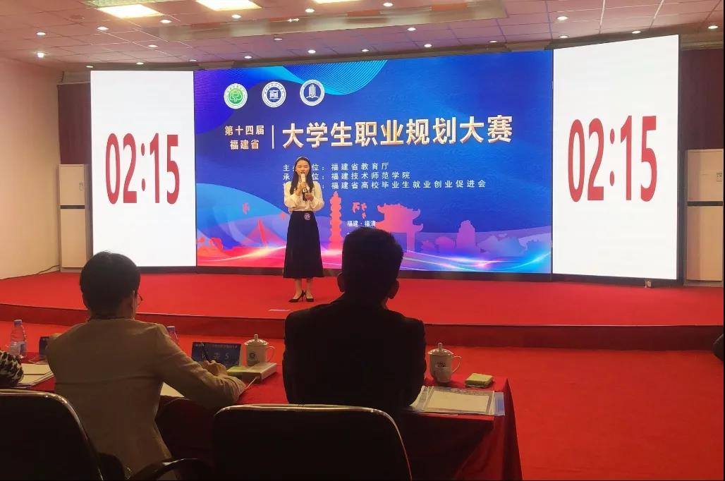 11月19日,由福建省教育厅主办的第十四届福建省大学生职业规划大赛总决赛和颁奖典礼在福建技术师范学院举行。我校2021级市场营销专业(专升本)周凯悦同学获得大赛本科组二等奖。