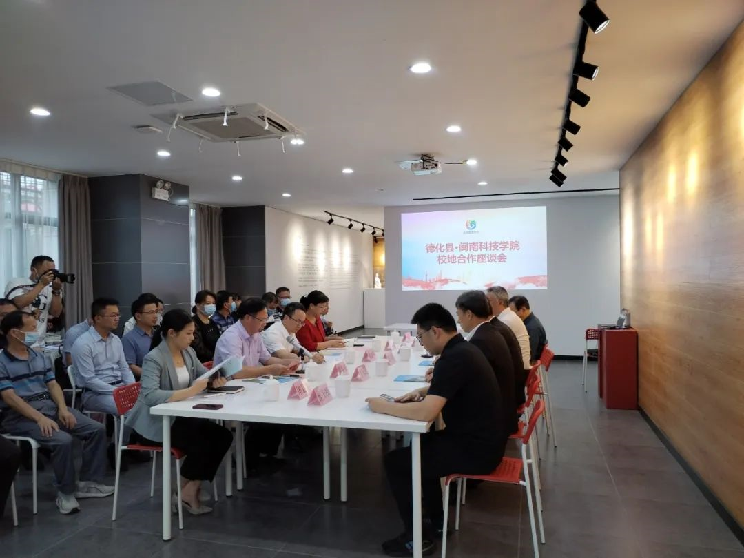德化县工信局、文旅局、自然资源局、人社局、教育局、科技局、陶瓷办、招商办、人才办、团县委、工商联、文旅集团等部门负责人,我校教务处、团委、马克思主义学院、艺术设计学院负责人参加座谈会并围绕合作内容开展交流研讨。