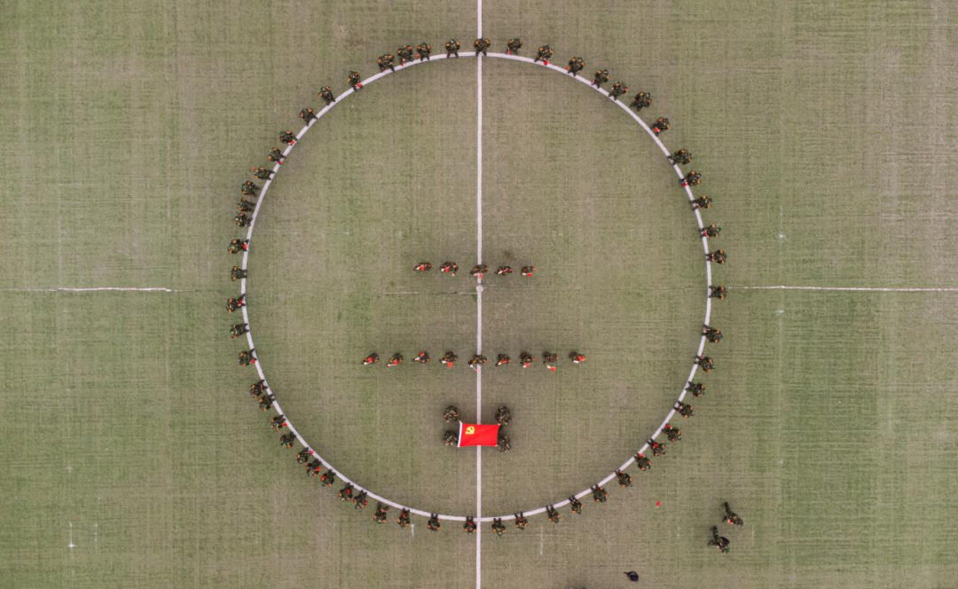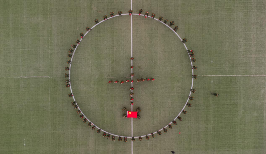 期间,光电信息学院2022级新生以方阵列队的形式,呈现出“二十大”的字样,用青春献礼党的二十大。