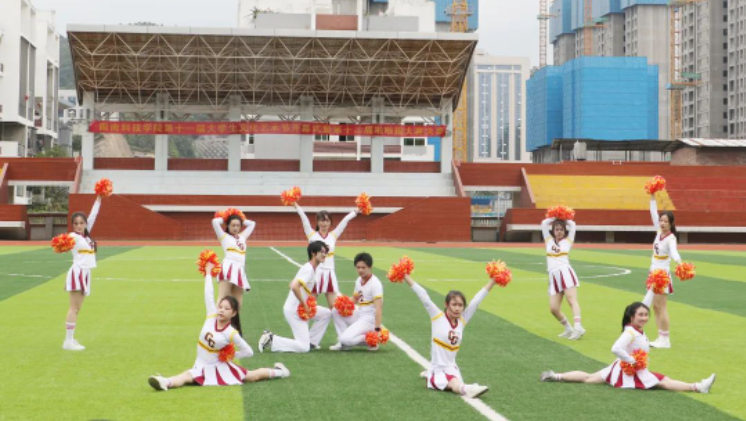 4月26日下午,我校举办第十一届大学生文化艺术节开幕式暨第十二届啦啦操大赛决赛。副校长邱永渠,相关职能部门负责人、各二级学院党总支书记,以及2022级全体学生参加活动。
