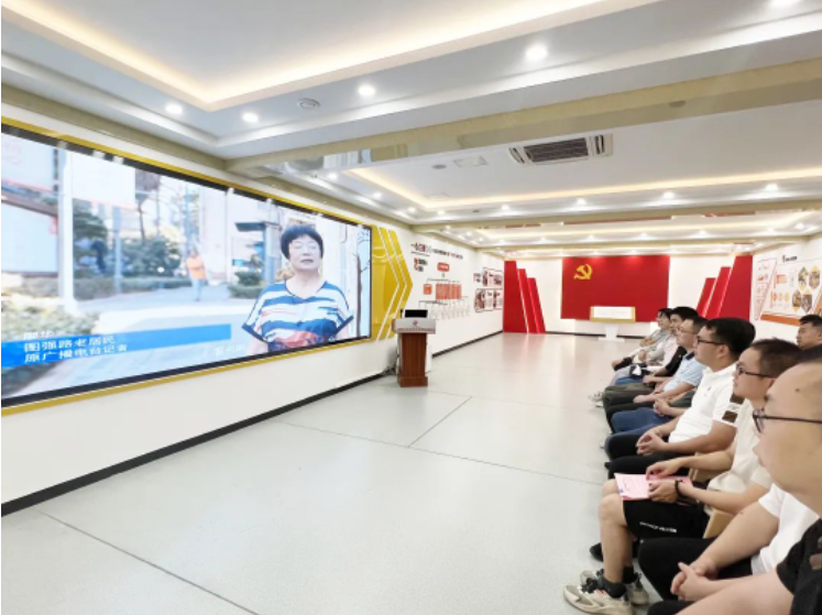 在深田社区政治生活馆,学院党总支书记陈章宫为全体教师党员上专题党课,观看视频短片《远亲不如近邻读册歌》。