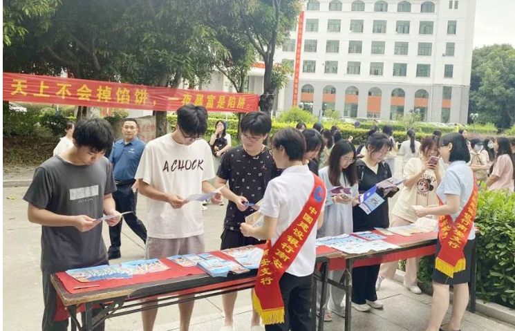 在学生社区,工作人员通过设置横幅标语、宣传展板、宣传册资料,用通俗易懂的语言为同学们普及防范非法集资知识,引导同学们自觉远离非法集资陷阱,提高同学们对非法集资的识别防范能力,受到了大家的欢迎和好评。