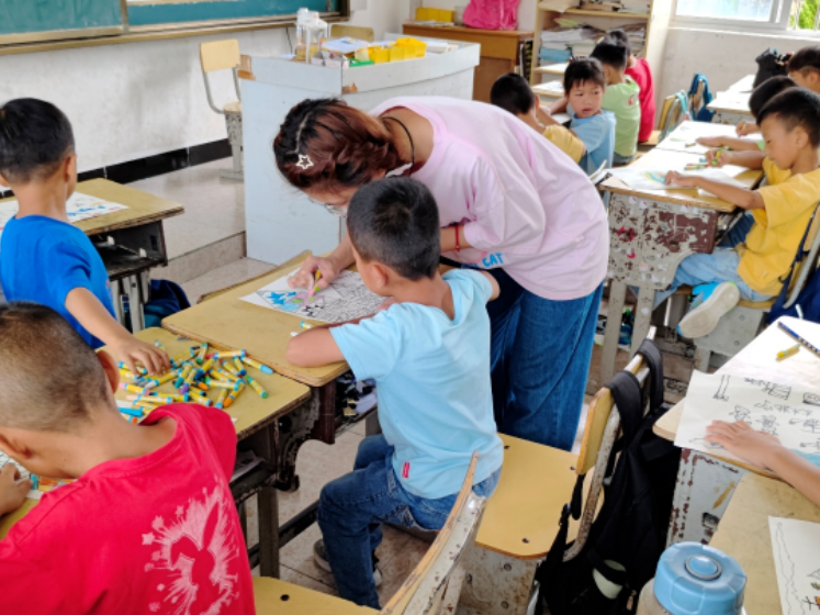 在艺术学习课上,实践队开设绘画、舞蹈、手工课程,为小朋友们提供多领域、多层次、全方面的知识与体验,帮助培养他们的动手能力和创造力。