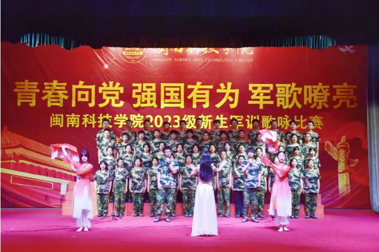 在此次军训歌咏比赛中,同学们通过深情演唱一首首耳熟能详的军旅歌曲,表达了对党和祖国的无限热爱和赞美,充分展现出闽科学子的担当精神和爱国情怀。
