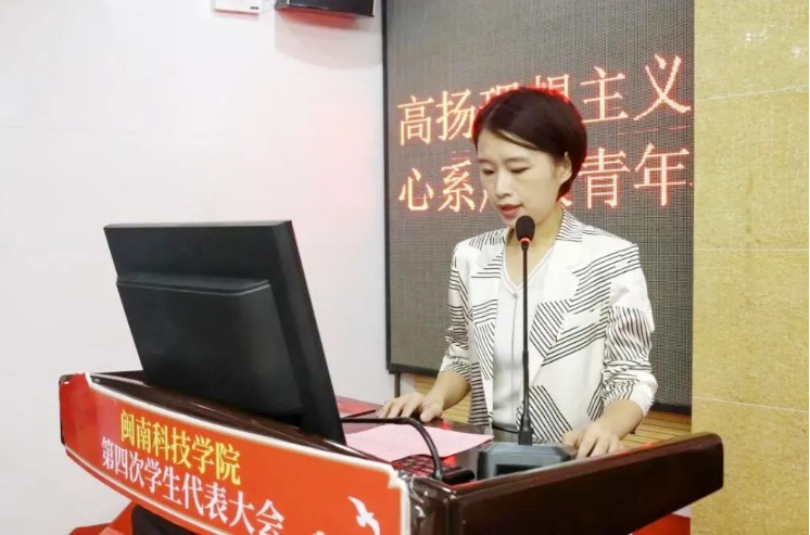 泉州团市委副书记傅漪代表共青团泉州市委、泉州市学联,向大会的召开致以热烈的祝贺。她向我校各级学生会提出三点期望:一要坚定信念,奋力开拓引领青年的思想阵地;二要主动作为,努力搭建服务青年的人才高地;三要强基固本,不断提升学生会组织的工作活力。她强调,我校要以本次大会的召开为新的起点,坚持以目标导向、问题导向持续深化学生会组织改革,以强化政治性、先进性、群众性为目标,明确学生会组织职能定位,坚持精简原则,努力建设青年满意社会认可的先进学生组织。